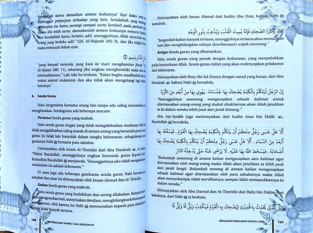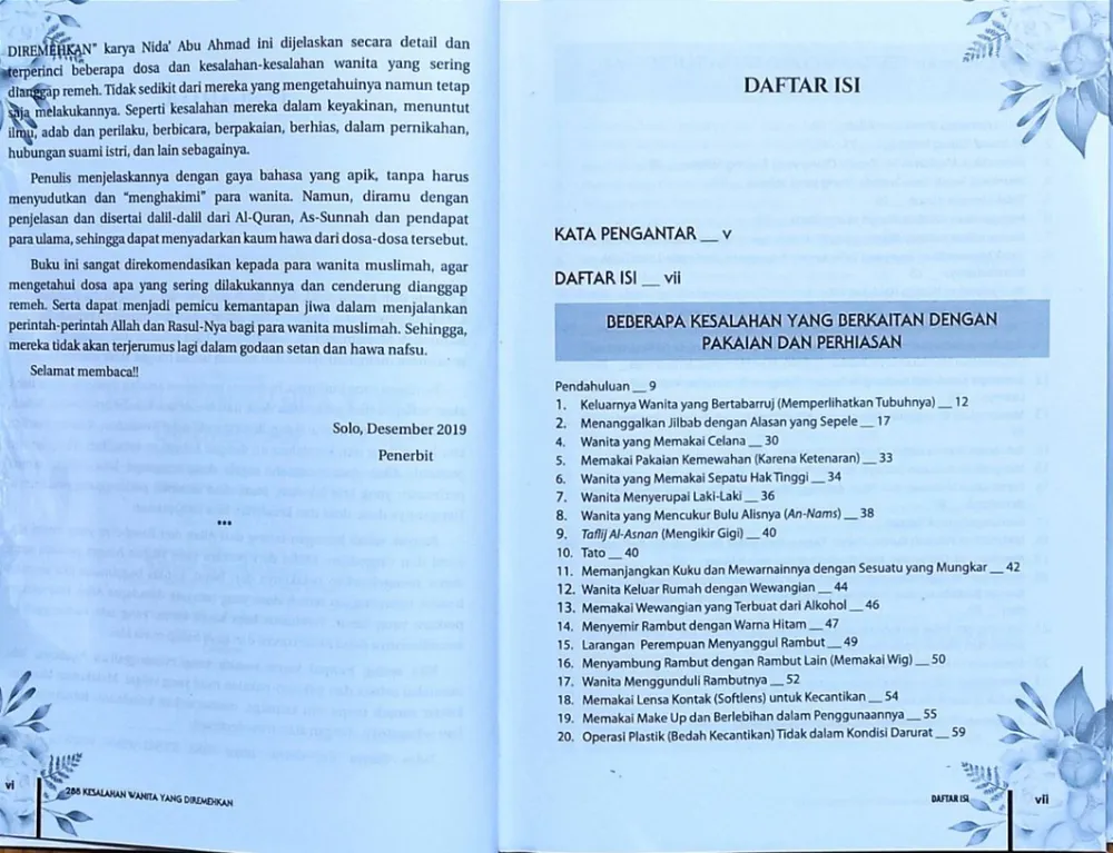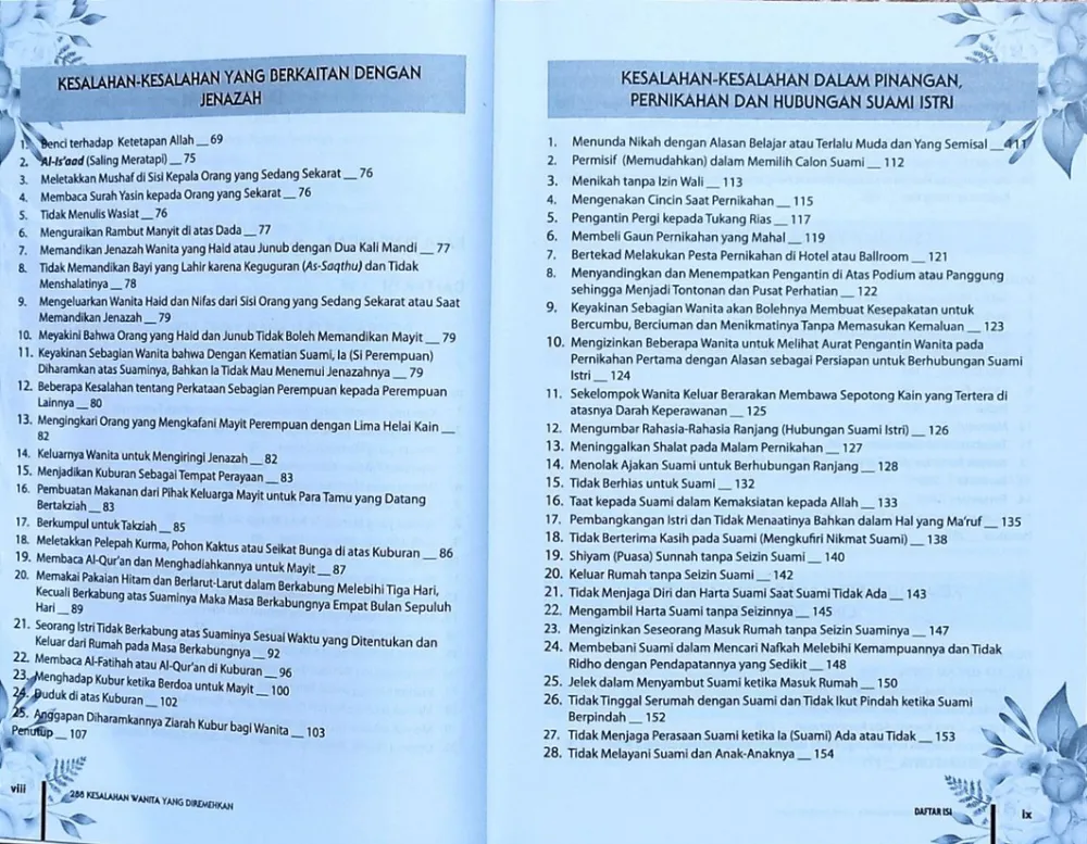 “Aku melihat ternyata mayoritas penghuni neraka adalah para wanita.” (HR. Bukhari dan Muslim) Sebagai seorang hamba pasti pernah melakukan kesalahan dan dosa. Tidak terkecuali wanita, pasti juga pernah terjatuh pada lubang dosa. Terkhusus kesalahan dalam rumah tangga, yang merupakan asbabul wurud (disabdakannya) hadits di atas. Buku “288 Kesalahan Wanita yang Diremehkan” ini mengupas secara menyeluruh kesalahan-kesalahan wanita; dari perkara aqidah, fiqih, muamalah, hingga adab dan akhlak. Di antara kandungan buku ini, yang bisa Anda soroti secara mendalam adalah kesalahan dalam: ● Berpakaian dan berhias ● Bertutur kata ● Pinangan, pernikahan, dan hubungan suami istri ● pergaulan Buku yang menarik untuk dibaca dan dimiliki setiap wanita muslimah, karena ia adalah ujung tombak generasi Islam. Yuk, simak buku ini. Spesifikasi: ● Sampul : Hard Cover ● Kertas : HVS ● Tebal : 554 Halaman ● Ukuran : 18 x 24,5 cm ● Berat : 1.100 gram