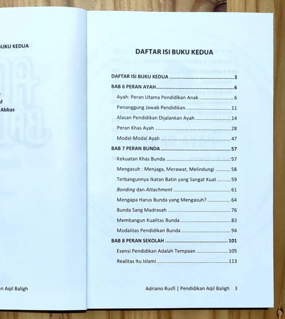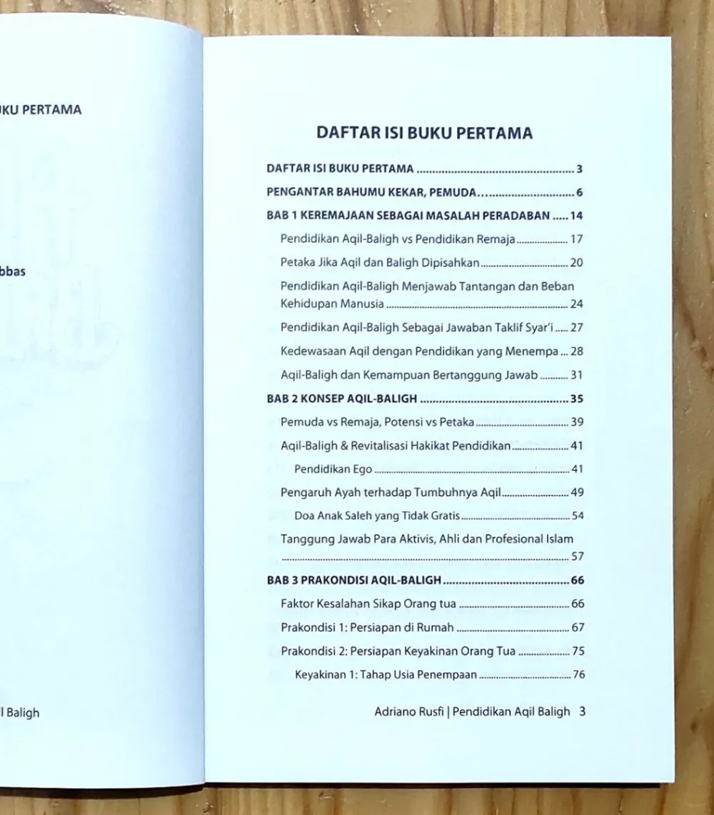 [Buku Pendidikan Aqil Baligh] "Mendidik Pemuda, Bukan Remaja" Penulis : Penerbit : Aqil Baligh Institute Telah ditakdirkan oleh Sang Pencipta bahwa di semesta ini segalanya berpasangan, dan harus berpasangan. Maka pasangan fujur adalah taqwa, pasangan nafsu adalah akal, dan pasangan baligh adalah aqil. Maka ketika baligh dan aqil berpisah, jiwa ketika itu limbung, pincang dan tak seimbang. Timbangan yang telah Allah tegakkan dalam jiwa tiba-tiba berdiri miring. Lahirlah para remaja yang gagal dalam menimbang, kesulitan mempertimbangkan, tak bisa adil dan setimbang. Mereka menjalani hidup dengan limbung dan pincang. Kita harus akhiri itu. Menyiapkan _mukallaf,_ generasi dewasa aqil-baligh selambatnya di usia 15 tahun, sebagaimana disepakati para ulama, perlu menjadi ikhtiar kita bersama. Pendidikan Taman Siswa yang diwariskan oleh Ki Hajar Dewantara hingga kini masih menyebut SMP sebagai Taman Dewasa, dan mari kita merindui Undang-Undang Pendidikan dan Pengajaran No. 1 Tahun 1951 yang menetapkan bahwa "Putra-putri Indonesia yang telah berusia 15 tahun harus mampu melaksanakan fungsi dan tanggung jawab orang dewasa". Ayah bunda, sekolah, masjid, dunia industri dan negara perlu segera berkolaborasi untuk tugas peradaban ini. Spesifikasi: ● Sampul : Soft Cover ● Kertas : HVS ● Tebal : 198/189 halaman ● Ukuran : 14 x 21 cm ● Berat : 700 gram