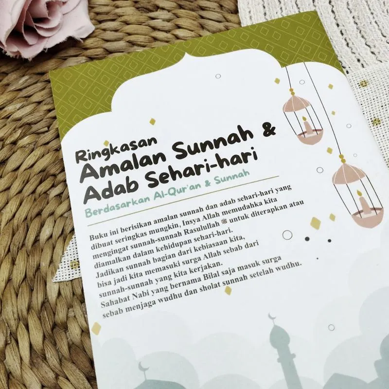 Buku ini berisikan amalan sunnah dan adab sehari-hari yang dibuat seringkas mungkin, Insya Allah memudahka kita mengingat sunnah-sunnah Rasulullah untuk diterapkan atau diamalkan dalam kehidupan sehari-hari. Jadikan sunnah bagian dari kebiasaan kita, bisa jadi kita memasuki surga sebab dari sunnah-sunnah yang kita kerjakan. Sahabat Nabi yang dibernama Bilal saja masuk surga sebab jaga wudhu dan sholat sunnah setelah wudhu. Spesifikasi: ● Sampul : Soft Cover ● Kertas : HVS ● Tebal : 58 Halaman ● Ukuran : 14 x 21 cm ● Berat : 100 gram